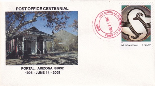 | Hand cancellation: "PORTAL RUR. STA., SAN SIMON, AZ 85632 USPS JUN 14 2005". |