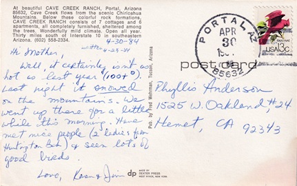 | Hand cancellation: "PORTAL, AZ 85632 APR 30 1984". |