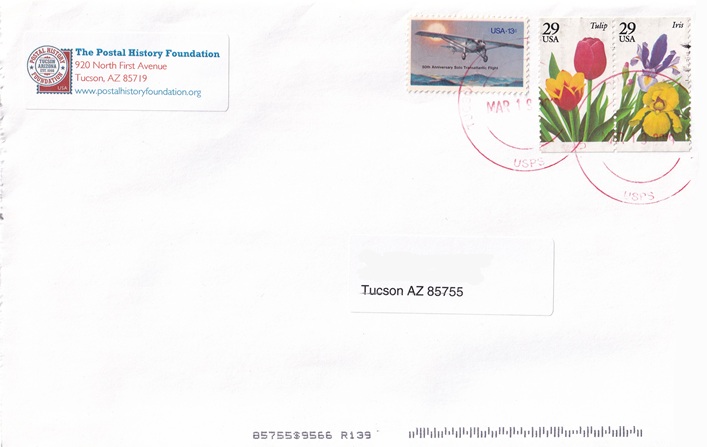 | Hand cancellations: "PHF PHILATELIC CENTER, TUCSON, AZ USPS MAR 19 2019". |