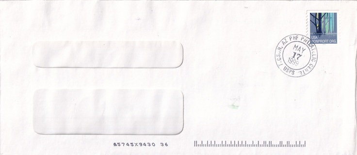 | Hand cancellation: "PHF PHILATELIC CENTER, TUCSON, AZ USPS MAR 20 1998". Has "FIRST CLASS MAIL PRECANCEL USE PERMIT #942" auxiliary marking. |