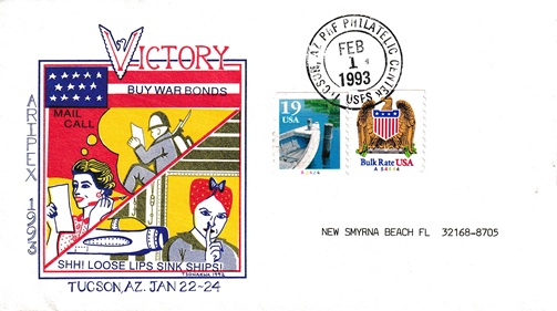 | Hand cancellation: "PHF PHILATELIC CENTER, TUCSON, AZ USPS FEB 1 1993". |