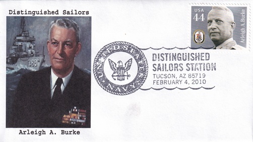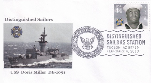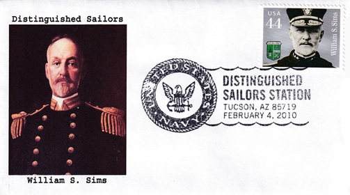 | These five cacheted covers salute distinguished sailors. Special hand pictorial & slogan cancellations: "DISTINGUISHED SAILORS STATION, TUCSON, AZ 85719 FEBRUARY 4, 2010 | UNITED STATES NAVY |". [TPS] |