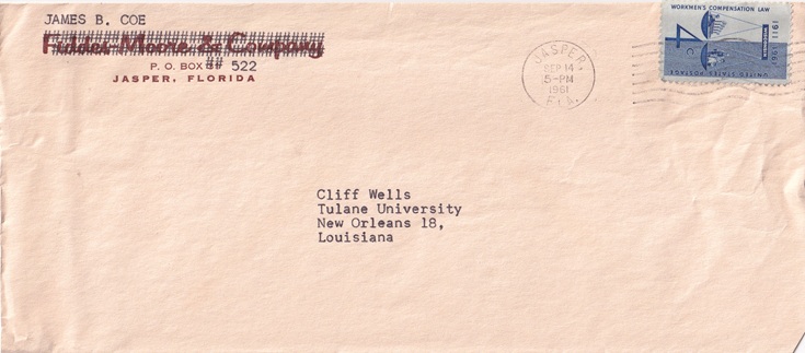Hand cancellation: "JASPER, FLA. SEP 14 1961".