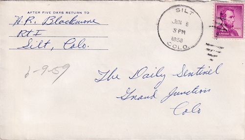 Machine cancellation: "PALISADE, COLO. JAN 11 1949".