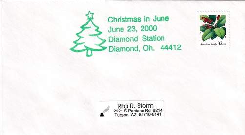 Special hand pictorial & slogan cancellation: "Diamond Station, Diamond, Oh. 44412 June 23, 2000 | Christmas in June |".