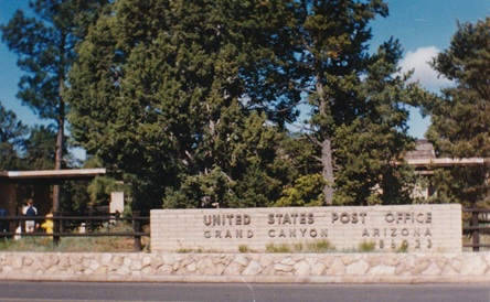 Here are postal cancellations from post offices in Grand Canyon National Park in northern Arizona. The cancellations are mostly on vintage tourist postcards supplemented with some postally used envelopes and philatelic covers. Currently there are two active post offices within the park. The "Grand Canyon Post Office" (est. 1902) is on the south rim, and the "North Rim Post Office" is located on the north rim of the park. The North Rim PO was originally named "Kaibab Forest Post Office" (est. 1926) and was renamed "North Rim Post Office" in 1947. There were three other earlier post offices on the south rim that were later discontinued. The first post office in the park was called "Tolfree" (est. 1894, discont. 1896) in operation for less than two years. Another discontinued post office was "Tourist" (est. 1897, discont. 1899) and it existed for only two years. The other post office was the "Grandview Post Office" (est. 1903, discont. 1908) associated with the pioneer Grandview Hotel, one of the early tourist destinations on Grand Canyon's south rim.