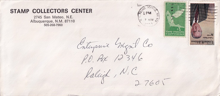 | Hand cancellation on front & back: "OLD ALBUQUERQUE STA., ALBUQUERQUE, N. MEX. AUG 26 1970". |