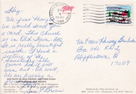 ![]() | Hand cancellation: "STA. NO. 9, ALBUQUERQUE, N.MEX. USPO DEC 21 1987". |
