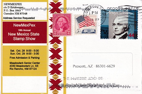 ![]() | Special hand pictorial & slogan cancellation: "NMSF STATION, ALBUQUERQUE, NM 87101 SEP 16 1989 | NEW MEXICO STATE FAIR 1989 |". |