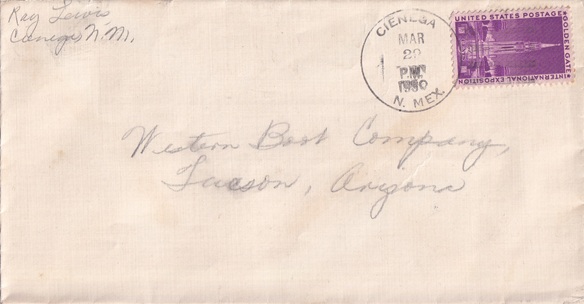 | Hand cancellation: "CIENEGA, N. MEX. MAR 29 1939". |