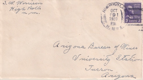 | Machine cancellation: "ALAMOGORDO, N.MEX. OCT 26 1922". |