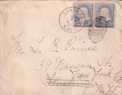 ![]() | Hand cancellation on back: "REC'D., SANTA FE, N.MEX. MAR 10 1906". [TPC] |