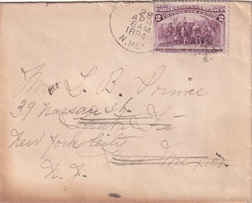 ![]() | Hand cancellation with cork killer: "SANTA FE, N.MEX. MAY 11 1885". [TPC] (L. Bradford Prince served as chief justice of the New Mexico Territorial Supreme Court from 1878 to 1882, and as the 14th Governor of New Mexico Territory from 1889 to 1893.) |
