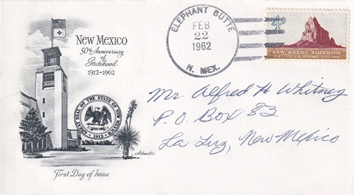 | Hand cancellation: "ELEPHANT BUTTE, N. MEX. FEB 22 1962". |