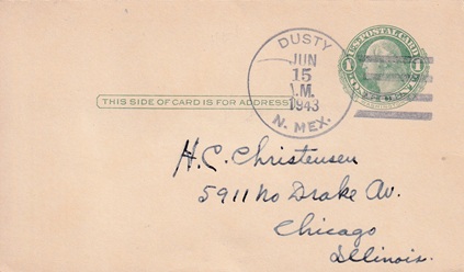 | Hand cancellation: "DUSTY, N. MEX. JUN 15 1943". |