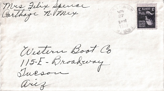 | Machine cancellation: "SOCORRO, N.MEX. MAR 10 1960". |
