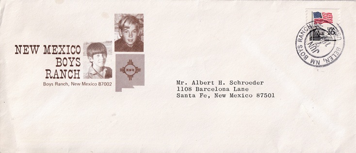 ![]() | Hand cancellation on front & back: "BOYS RANCH BR., BELEN, NM USPO MAR 12 1986". |