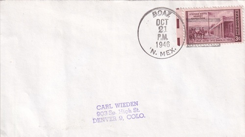 ![]() | Hand cancellation: "BOAZ, N. MEX. OCT 21 1946". |