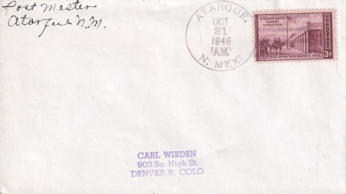 | Hand cancellation: "ATARQUE, N. MEX. OCT 21 1946". |