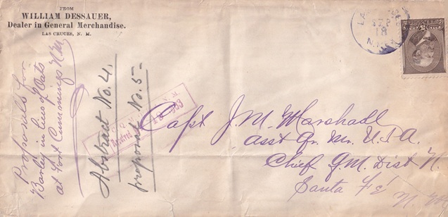 | Hand cancellation: "FORT SELDEN, N. MEX. JUL 5 1883". [TPC] |