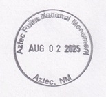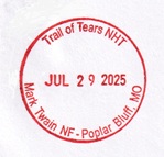 During late July to early August, 2025, we made a long trip through portions of Arizona, Arkansas, Kentucky, Missouri, New Mexico, Oklahoma, Tennessee, and Texas. Along the way we visited some BLM, NPS, USFS, and USFWS sites, and many state parks. I have prepared this webpage illustrating the passport cancellation stamps and bonus stamps collected from these sites. The stamps are listed by stamping station in the order they were collected. The federal/national sites are shown in green.