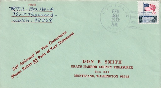|  | Hand cancellation:  "PORTAL, AZ 85632 FEB 29 1972". |