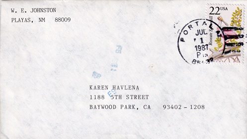 |  | Hand cancellation:  "PORTAL, AZ 85632 JUL 1 1987". |