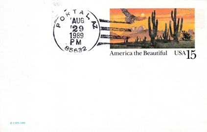 |  | Hand cancellation:  "PORTAL, AZ 85632 AUG 29 1989". |