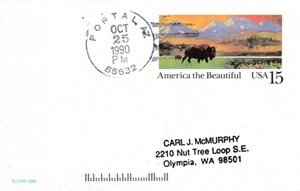 |  | Hand cancellation:  "PORTAL, AZ 85632 OCT 25 1990". |