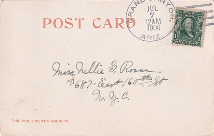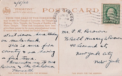 Machine cancellation: "GRAND CANYON, ARIZ. JUN 6 1920".