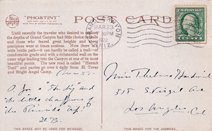 Machine cancellation: "GRAND CANYON, ARIZ. MAR 23 1922".