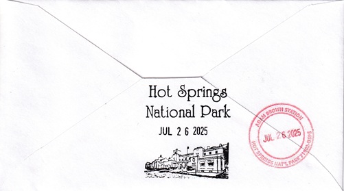 | Special hand pictorial & slogan cancellation: "YELLOWSTONE NATIONAL PARK STATION, YELLOWSTONE NATIONAL PARK, WY 82190 AUGUST 25, 2016 | NATIONAL PARK SERVICE CENTENNIAL 1916 2016 |". |
