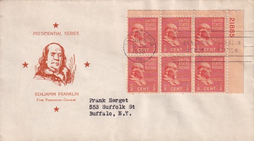 | Two special hand cancellations: "BENJAMIN FRANKLIN MEMORIAL STA., PHILADELPHIA, PA. MAY 19 1938". |