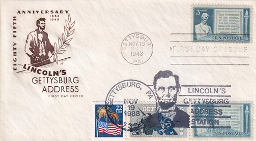 | Special hand pictorial & slogan cancellations: "Presidential Birthplace Station, HODGENVILLE, KY 42748 FEB 12 1987 | ABRAHAM LINCOLN - FEBRUARY 12, 1809 |". |