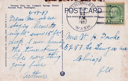 | Machine cancellation: "YELLOWSTONE PARK, WYO. JUL 28 1937". |