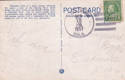 | Machine cancellation: "| OLD FAITHFUL STATION | YELLOWSTONE PARK, WYO. JUL 28 1931". |