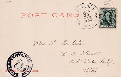 | Hand cancellation: "YELLOWSTONE PARK, WYO. JUN 20 1906". |
