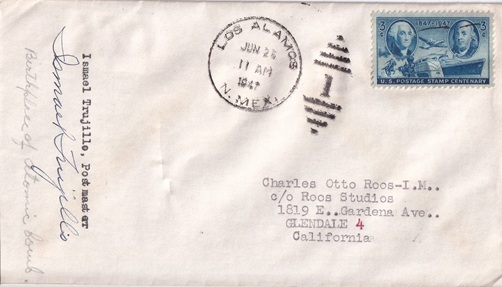![]() | Hand cancellation: "LOS ALAMOS, N.MEX. JUN 26 1947 | 1 |". |