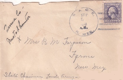 | Hand cancellation: "GAGE, N. MEX. SEP 5 1918". |