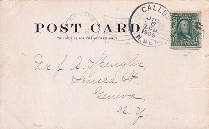 | Hand cancellation: "GALLUP, N.MEX. JUL 6 1906". [TPC] |