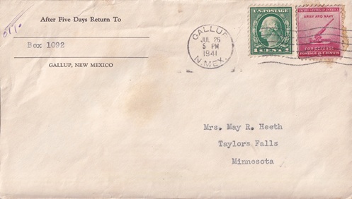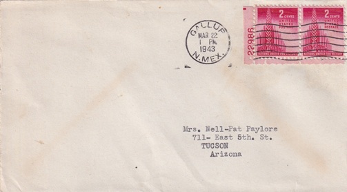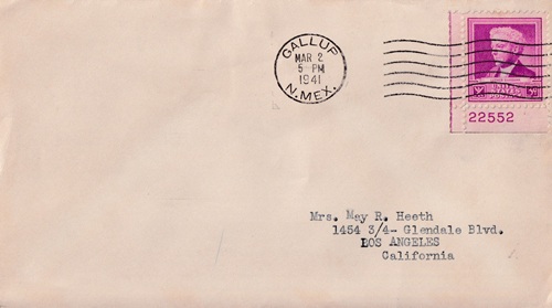 | Machine cancellation: "GALLUP, N.MEX. MAR 2 1941". |