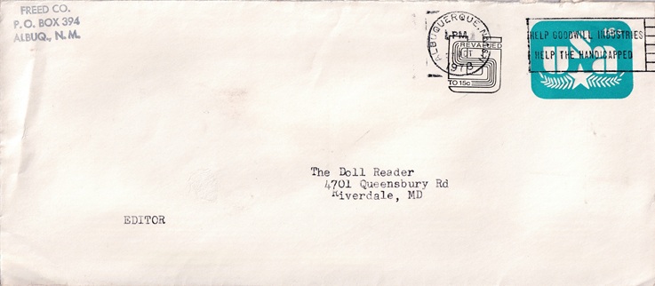 ![]() | Hand cancellation on front & back: "STA. B, ALBUQUERQUE, NM USPO NOV 10 1977". |