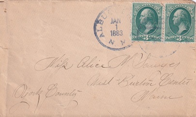 ![]() | Hand cancellation: "ALBUQUERQUE, N. M. JAN 1 1883". [TPC] |