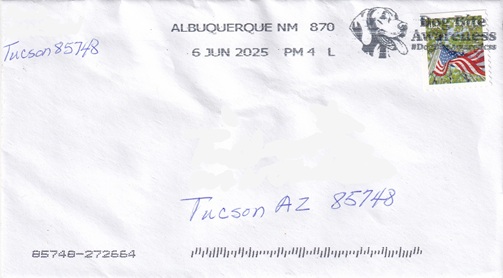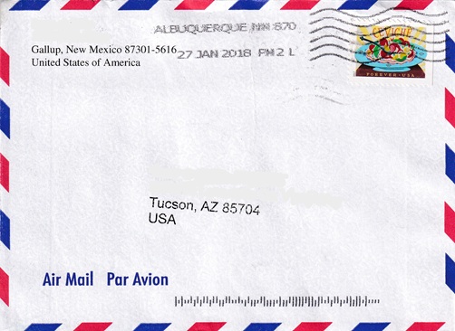 ![]() | Hand cancellation: "STA. 6, ALBUQUERQUE, NM USPO MAR 10 1986". |