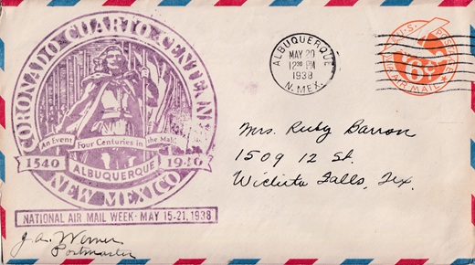 ![]() | Machine cancellation: "ALBUQUERQUE, N.MEX. MAY 20 1938". |