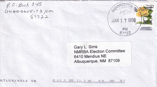 | Hand cancellation: "GUADALUPITA, NM 87722 MAR 17 1998". |