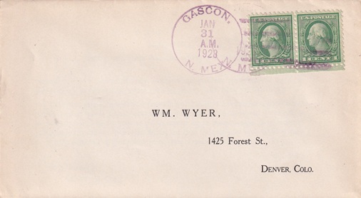 Hand cancellation: "GASCON, N. MEX. JAN 31 1928.