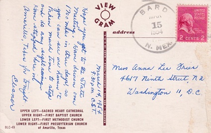 | Hand cancellation: "BARD, N. MEX. MAR 15 1954". |