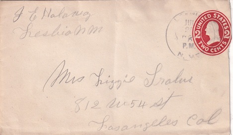 | Hand cancellation on back: "HOUSE, N. MEX. NOV 29 1911". Has "REGISTERED NO." auxiliary marking. [TPC] |