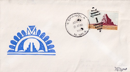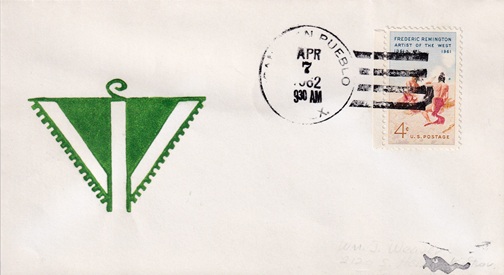 | Hand cancellation: "SAN JUAN PUEBLO, N. MEX. APR 7 1962". |